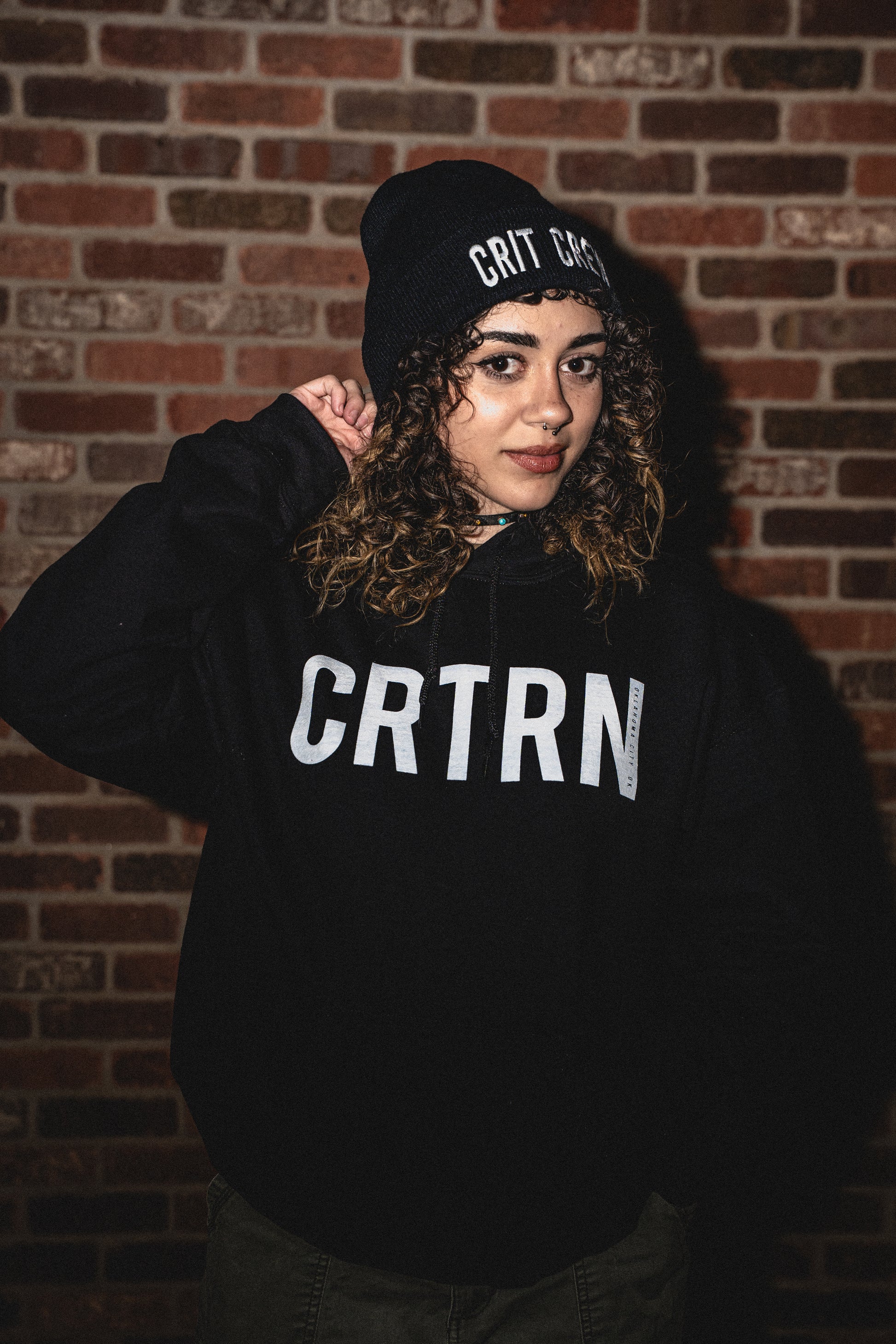 - Embroidered CRIT CREW font